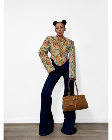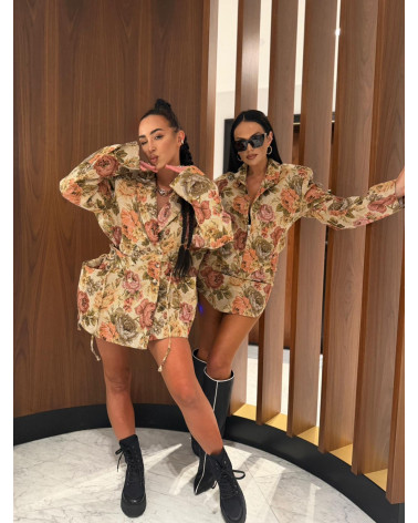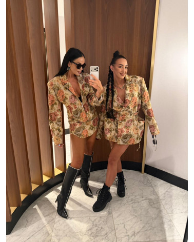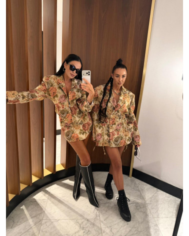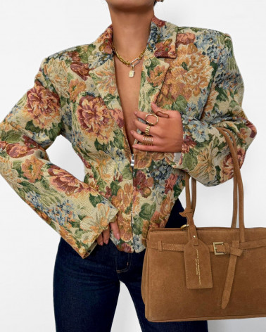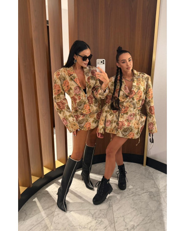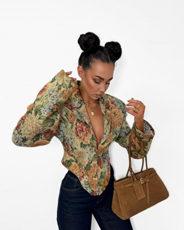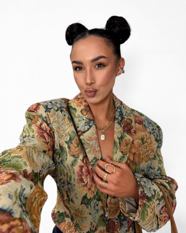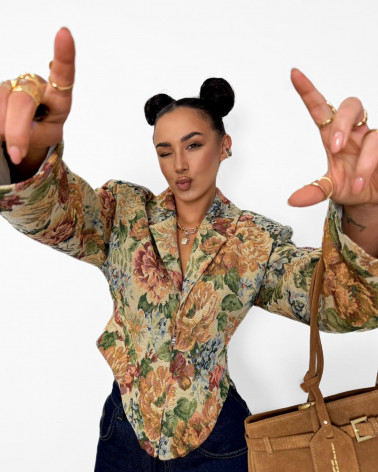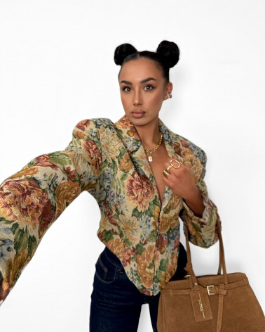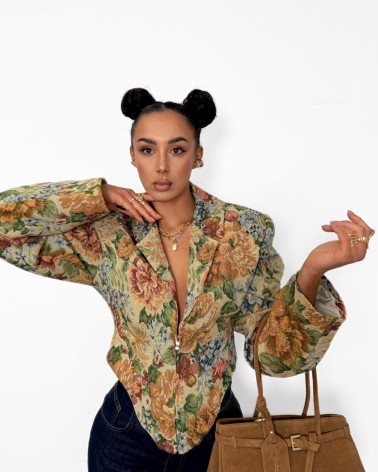 Oryginalna marynarka La Milla to wyjątkowy, kobiecy fason łączący elegancję z nowoczesnym charakterem. Wyróżnia ją efektowny, gobelinowy wzór w kwiaty, który nadaje całości luksusowego i oryginalnego wyrazu. Taliowana i zapinana na suwak, z długimi, prostymi rękawami oraz wyrazistymi, usztywnionymi ramionami, podkreśla sylwetkę, a dekolt z kołnierzykiem i klapami dodaje szyku.