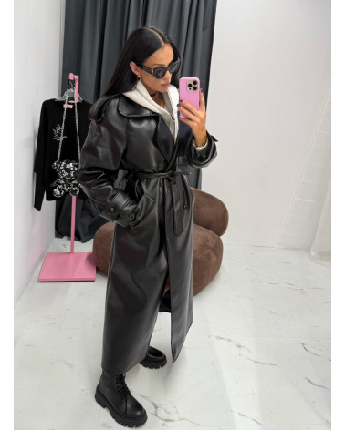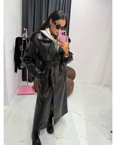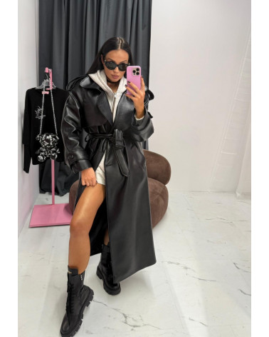 CZARNY TRENCZ MAXI Z EKOSKÓRY LA MILLA PREMIUM