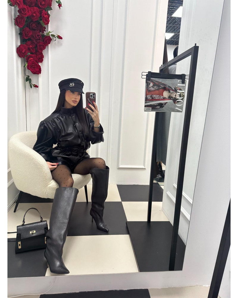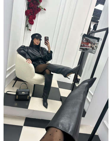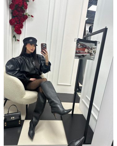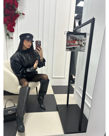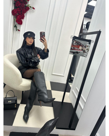 CZARNY KOMPLET MEDIOLAN BELLUCI BOMBERKA+SPODENKI Z EKOSKÓRY