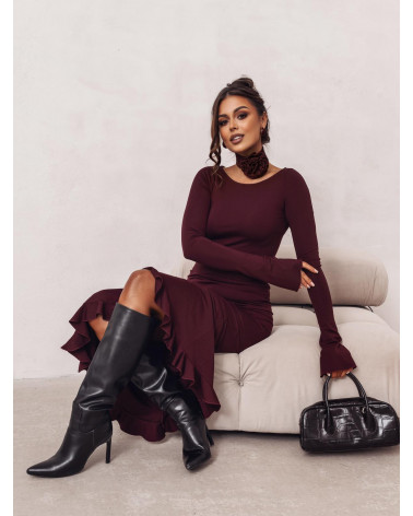 Burgundowy odcień to doskonała alternatywa dla klasycznej czerni – głęboki, elegancki kolor, który dodaje ciepła i wyjątkowego charakteru każdej stylizacji. To idealna propozycja na kolację, przyjęcie, uroczystość czy romantyczny wieczór.