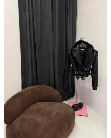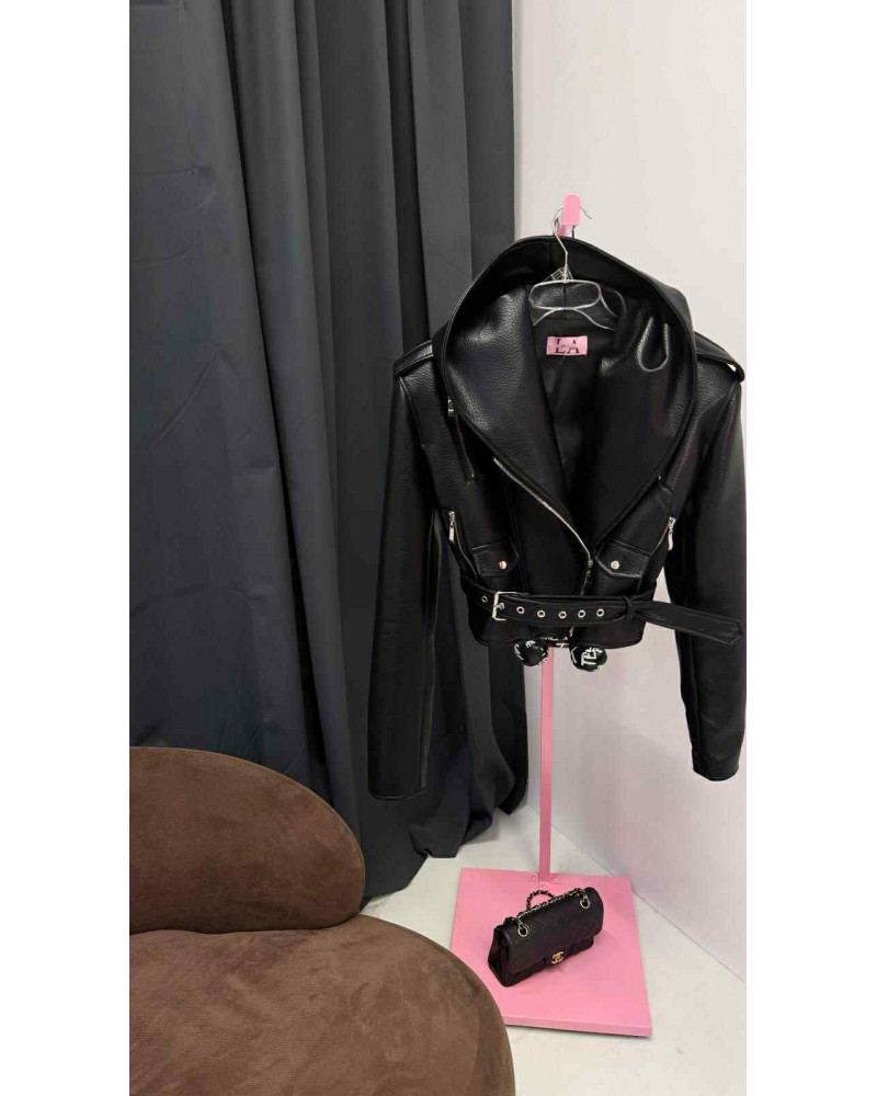 CZARNA RAMONESKA Z KAPTUREM Z EKOSKÓRY LA MILLA