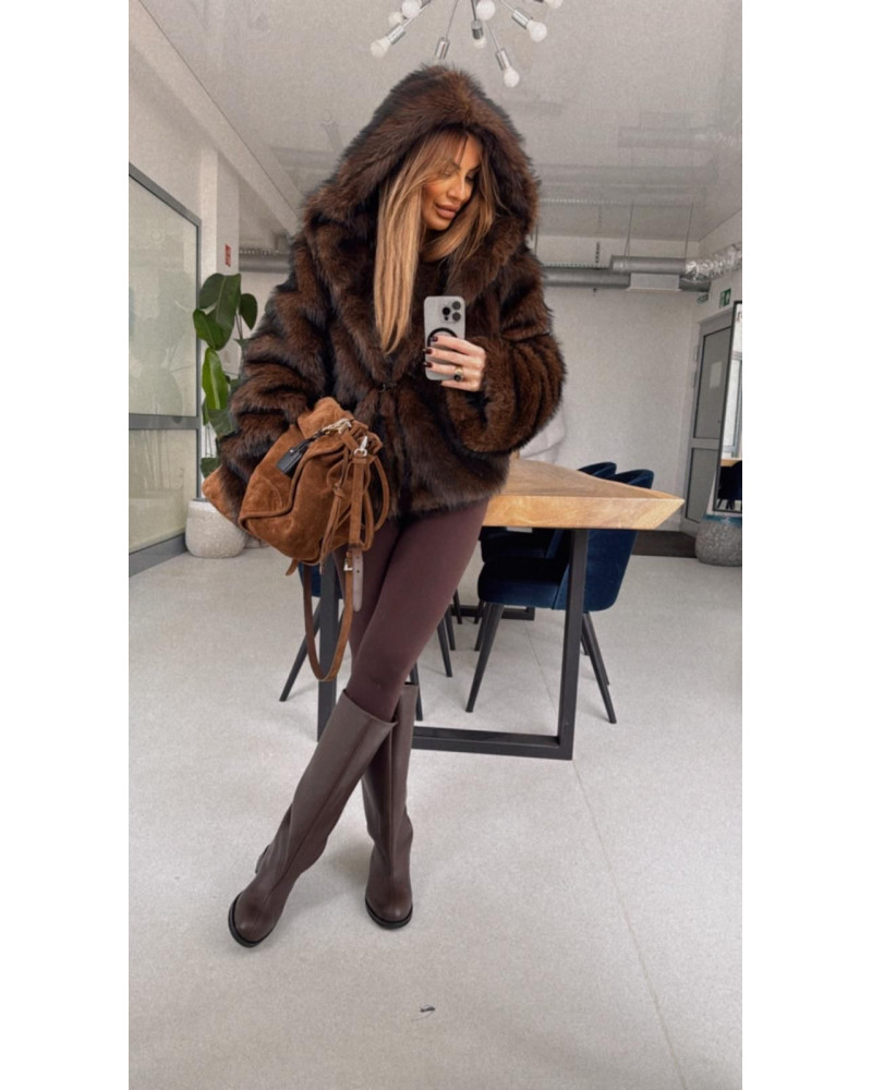 FUTRO ECO LIS Z KAPTUREM CZEKOLADA EMO