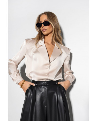 - Krótka, dopasowana bluzka z rękawem typu dzwonek i efektownym splotem z przodu podkreśla kobiecą sylwetkę. Stylowe detale, takie jak rozszerzane rękawy i dekoracyjny przód, dodają całości modnego charakteru.